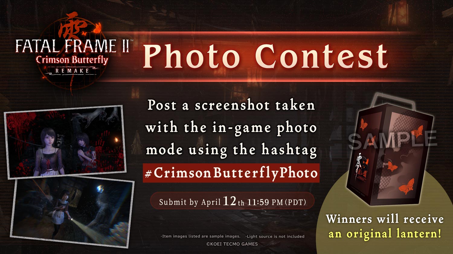 Winners will receive an original lantern inspired by the save points in FATAL FRAME II: Crimson Butterfly REMAKE.