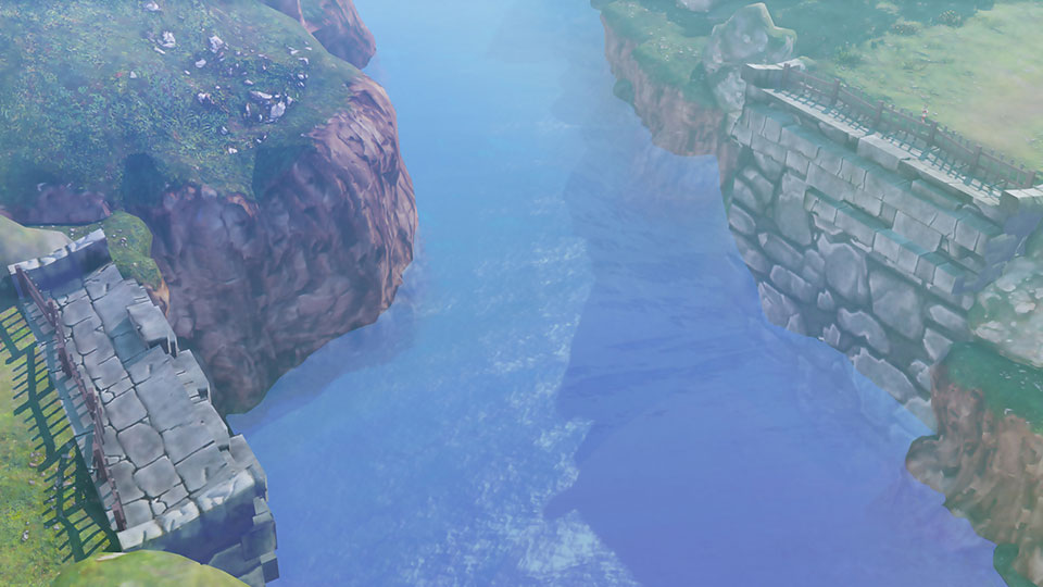 After looking around for another way past the river, Firis finds a suspicious cave. Passing through may lead to the other side of the ravine...